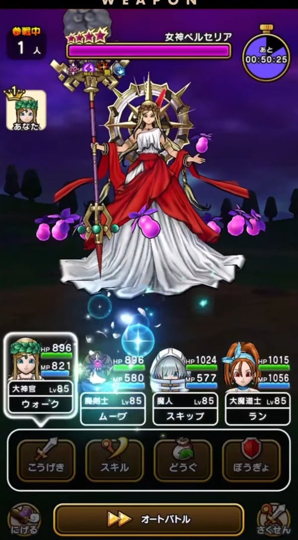| 永続パッシブ | 僧侶レベル50(かいふく魔力+10) 踊り子レベル50(かいふく魔力+10) 遊び人レベル55(かいふく魔力+5) 賢者レベル90(かいふく魔力+15) スパスタレベル90(かいふく魔力+15) 大神官レベル70(かいふく魔力+30) |