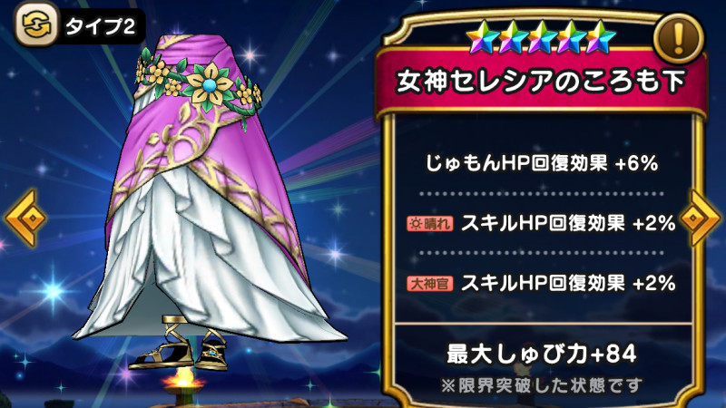 ドラクエウォークの防具「女神セレシアのころも下」の評価や習得スキル・特殊効果をまとめています。