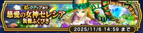 ![]() 女神セレシアのつえ 0.5% | ![]() 女神セレシアの冠 0.5% | ![]() 女神セレシアのころも上 0.5% | ![]() 女神セレシアのころも下 0.5% |