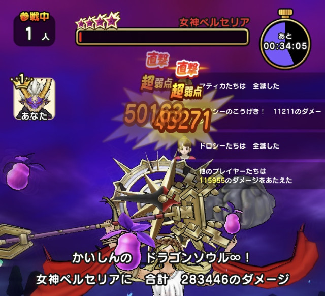 女神ペルセリア 攻略 ワンパン 神喰らいの大剣 英雄たちの反撃 6周年【ドラゴンクエストウォーク】【DQW】【DQウォーク】17870