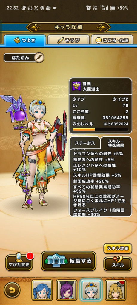 こころは状態異常成功率あがるので、心珠は封印成功率アップ