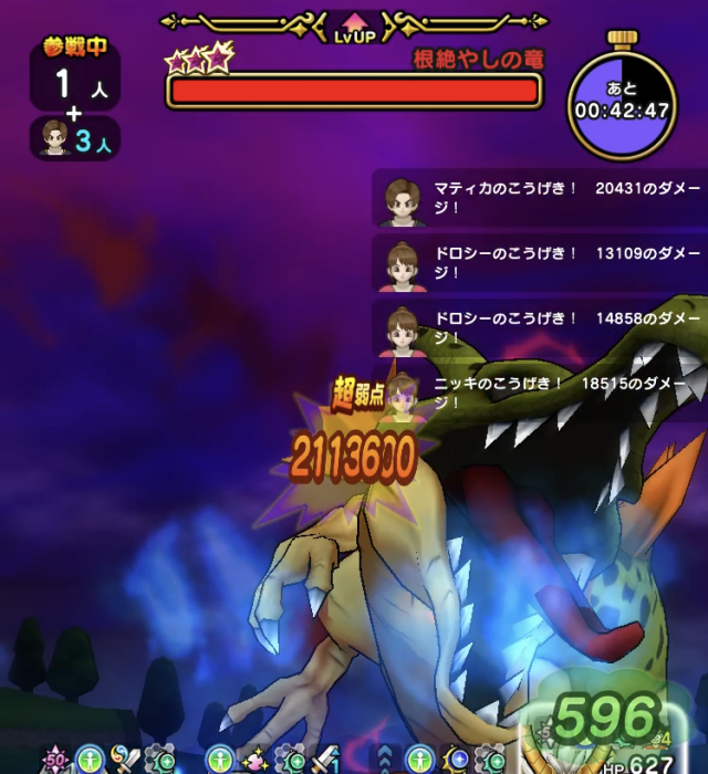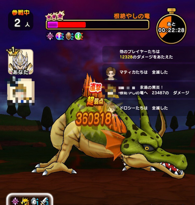 ドラクエウォークのメガモン「根絶やしの竜」の攻略と弱点をまとめています。出現場所、参加方法、報酬なども掲載していきますので強すぎる勝てない場合の参考にしてください。