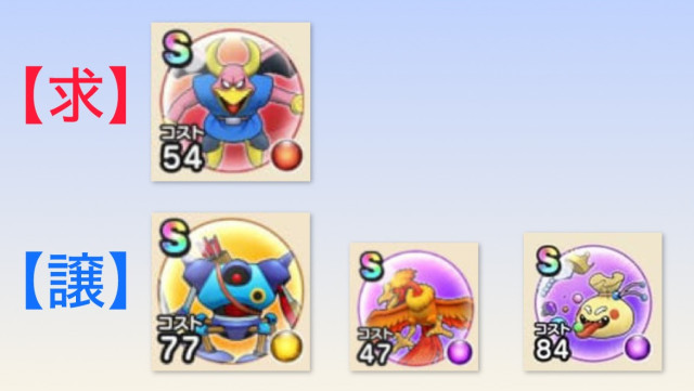 ![]() こころ | ・S~Dランクまで ・宝の地図のフィールドに出現するメインストーリー系まで ・強敵モンスターは交換可能 ・ギガモン、メガモン、ほこら、覚醒千里行限定などは対象外 ・イベント配布も対象外 ・ご当地(地域限定)のこころも対象外 ※鍵を掛けていると交換不可 |