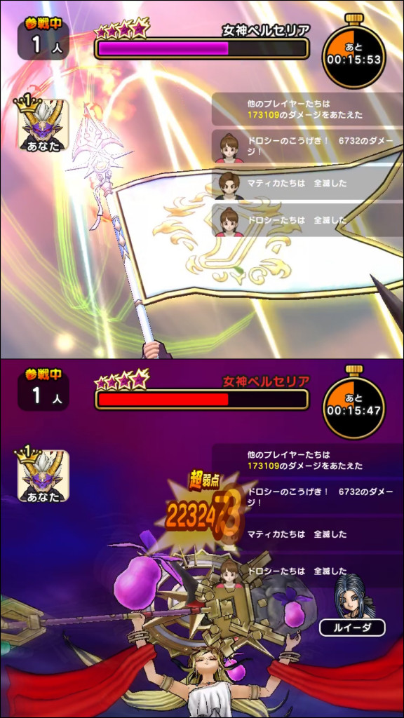 敵全体にメラかデインの710%斬撃ダメージ(メタル系に+99)を与え HP30%以下の敵を崩壊させる 敵の数が多い程会心率UPと崩壊条件緩和