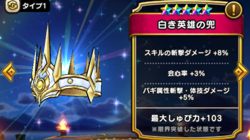 ドラクエウォークの防具「白き英雄の兜」の評価や習得スキル・特殊効果をまとめています。
