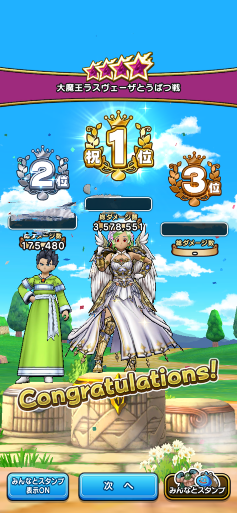 変身後の「神魔王ラスヴェーザ」まで討伐するとミッションやマジンコア破壊の「まもの討伐数」が2つ、「メガモン討伐」が1つ進みます。