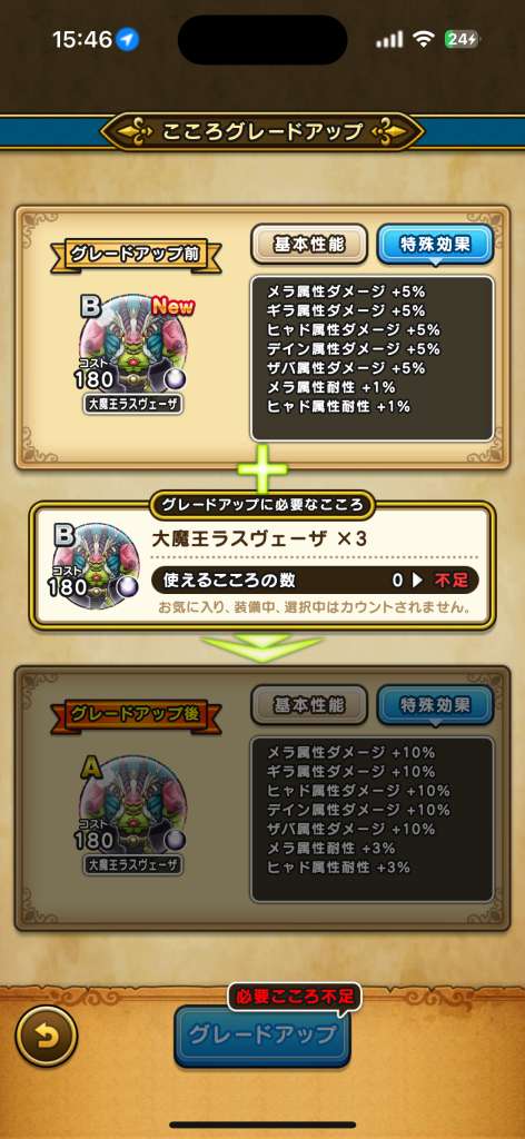 大魔王ラスヴェーザのこころSの性能と必要個数