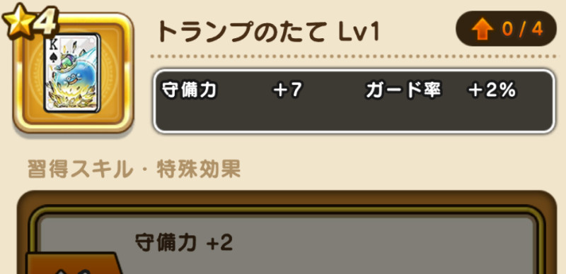 トランプのたての性能と習得スキル