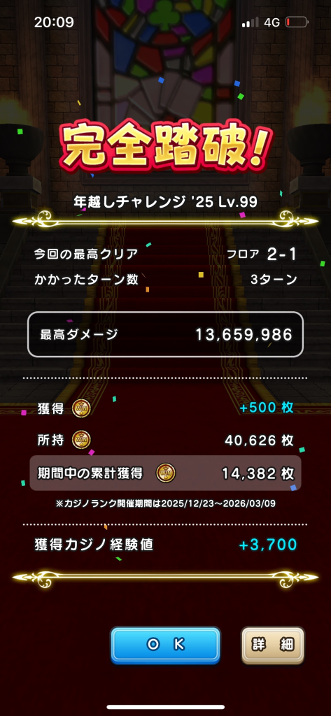 ・絵札の攻撃が成功した場合 攻撃終了時に1/2の確率で200カジノゴールドを得る