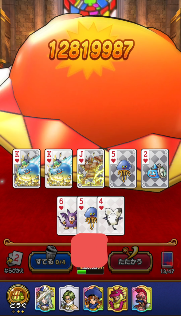 ライアン・アリーナ・ミネア・セラフィでQKフルハウスメタル3枚でこれくらい