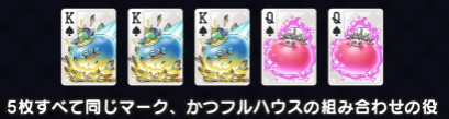 スリーカードはそこそこ出るし、うまくいったらフルハウスかフォーカード二移行しても含まれるスリーカードで強化してくれるから威力と頻度のバランスが良く感じる