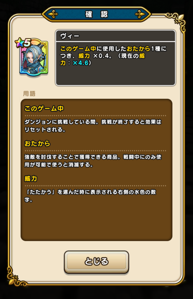 | 18 | ![]() ダーン | 【おすすめ度】![]() ・戦闘終了時に 150カジノゴールドを得る |