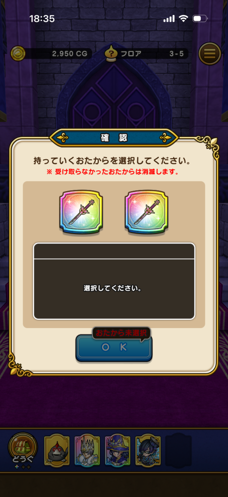 | 1 | ![]() 超・スペード交換スクロール | ・手札から選択した最大5枚のカードとおわかれして代わりにそのナンバーのスペードのカードを仲間にする。 |