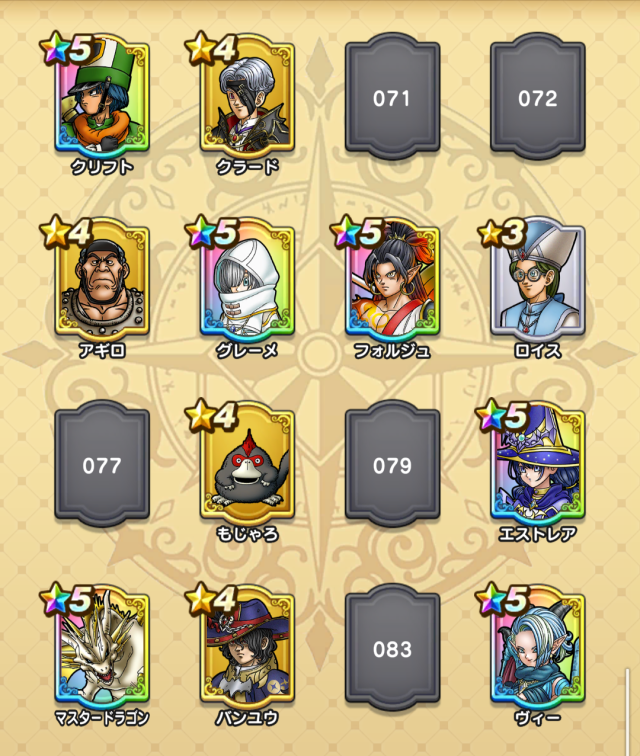 | 図鑑5種類ずつ登録 ※2025/10/9時点で38種類 ※Lv5ずつ1500マイレージ | DQウォークマイレージ×10500 |