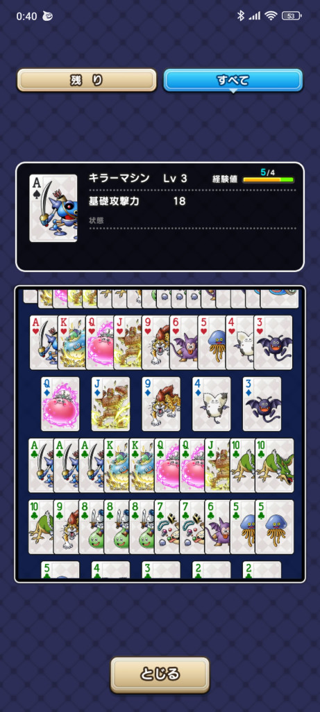 ※役にならなかったカードや「すてる」カードは経験値が貯まらない。