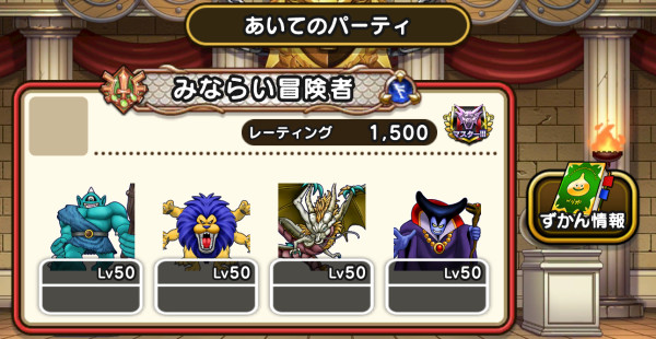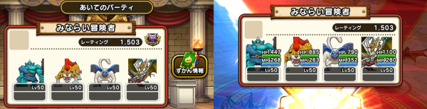 こちらのパーティを選択する時点で相手のレーティングが表示されます。