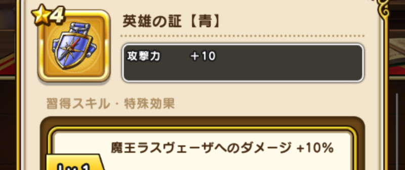 | Lv1 | 魔王ラスヴェーザへのダメージ+10% |