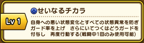 再行動時に補助効果の有効ターンを消費するため、せいなるチカラ使用直前に発動した