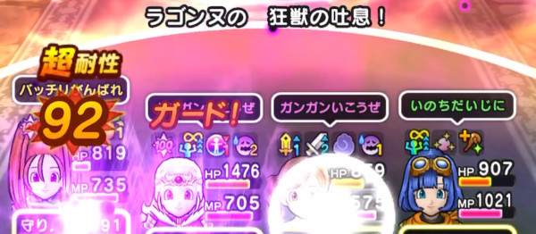 ![]() ![]() ▲左から2番目のキャラが敵のブレス攻撃をガードした例 |