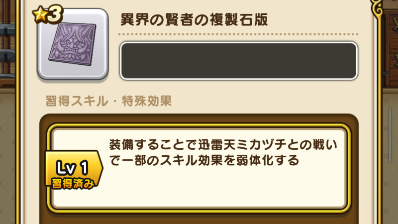 ドラクエウォークの防具「異界の賢者の複製石板」の評価や習得スキル・特殊効果をまとめています。