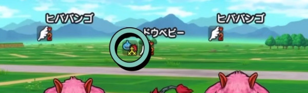 最低HPの敵に「スライム」が付きます。「スライム」は、付いている敵が倒れた時、両脇の的に体技ダメージ+確率で「ふきとばし」の効果があります。
