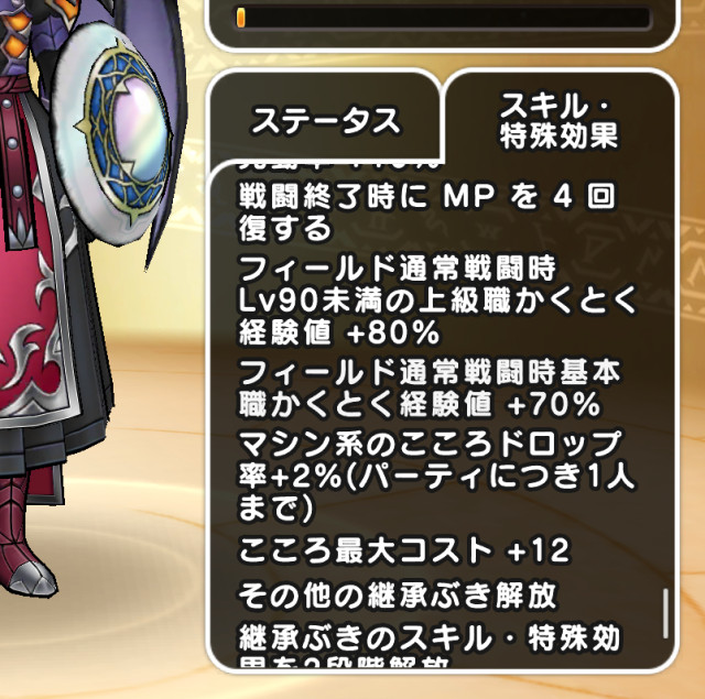 DQ1&2関連の装備を付けていると、フィールドでの獲得経験値が+2%上昇します。何個付けたとしても、1キャラ当たり最大+2%です。