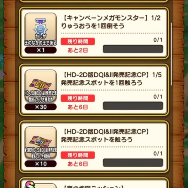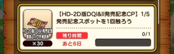 ![]() | HD-2D版DQⅠ&Ⅱ発売記念復刻ふくびき補助券×100枚 発売記念スポットミッション:100枚 |