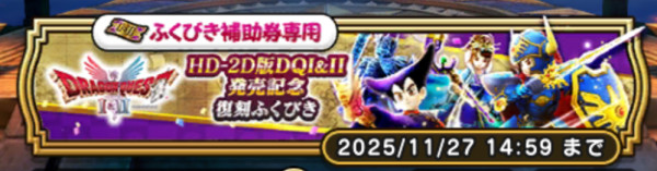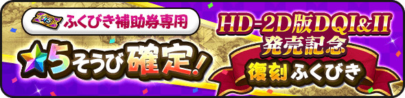 ![]() | ★5確定HD-2D版DQⅠ&Ⅱ発売記念復刻ふくびき補助券×20枚 記念クエストクリア:10枚 発売記念スポットミッション:10枚 |