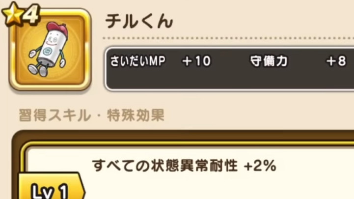 ドラクエウォークの防具「チルくん」の評価や習得スキル・特殊効果をまとめています。