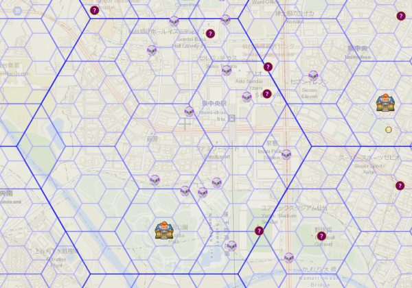 泉中央エリアのメガモン出現場所