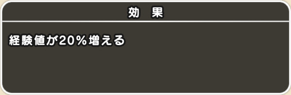 ![]() 記念スポット | ![]() | 効果時間:20分間 フィールド通常戦闘時の経験値が20%増える |