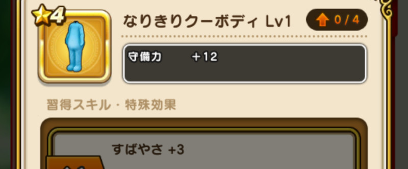 ドラクエウォークの防具「なりきりクーボディ」の評価や習得スキル・特殊効果をまとめています。
