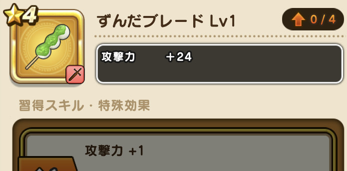 ドラクエウォークの武器「ずんだブレード」の評価や習得スキル・特殊効果をまとめています。ダメージ比較やおすすめこころセットを最大火力ランキングで確認することもできますので参考にしてください。