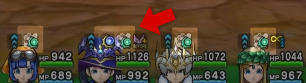 | ※自身が戦闘不能や「ふきとばし」等で離脱していた場合、ターン延長や段階の上昇は発動しない。 ※馬車で入れ替えしていた場合、発動しない。 ※「モシャス」使用時、追加で発動しない。 ※テンションや竜気などの段階は上がらない。 ※2段階→3段階には 限界突破の事前付与が必要 |