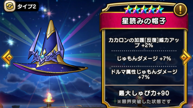 ドラクエウォークの防具「星読みの帽子」の評価や習得スキル・特殊効果をまとめています。