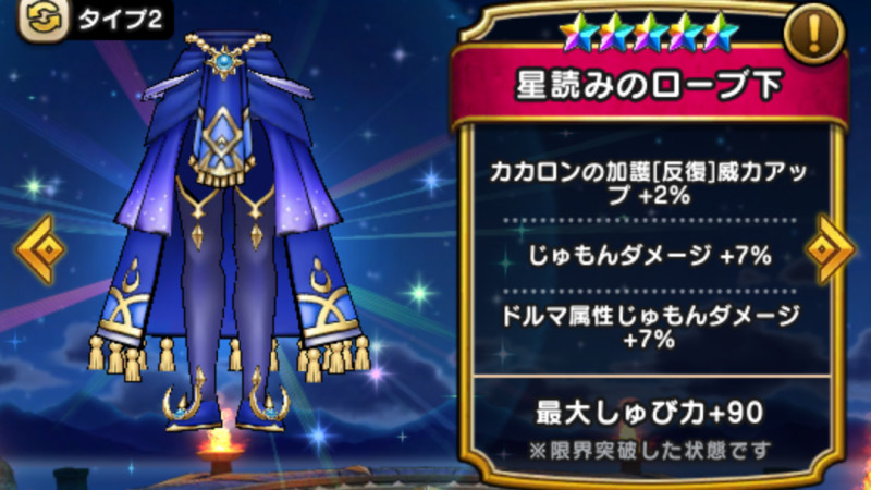 ドラクエウォークの防具「星読みのローブ下」の評価や習得スキル・特殊効果をまとめています。