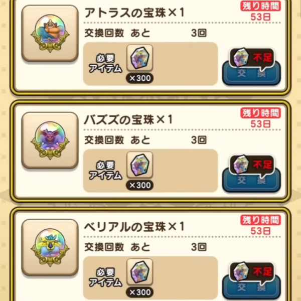 アトラス・バズズ・ベリアルの宝珠は「こころ覚醒」の交換所で入手できます。覚醒に必要な宝珠は3個ずつ。
