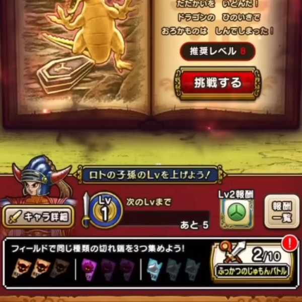 「切れ端」は、通常/強/メタルの全部で3種類あります。ロトの子孫のレベルに応じてモンスターが決まるため、すぐに消化してレベルを上げた方がいいです。
