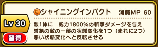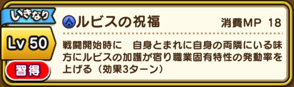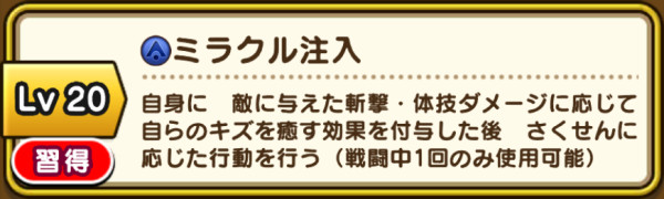 | 永続パッシブ | 僧侶レベル50(かいふく魔力+10) 踊り子レベル50(かいふく魔力+10) 遊び人レベル55(かいふく魔力+5) 賢者レベル90(かいふく魔力+15) スパスタレベル90(かいふく魔力+15) |