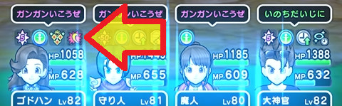 | 永続パッシブ | 僧侶レベル50(かいふく魔力+10) 踊り子レベル50(かいふく魔力+10) 遊び人レベル55(かいふく魔力+5) 賢者レベル90(かいふく魔力+15) スパスタレベル90(かいふく魔力+15) 大神官レベル70(かいふく魔力+30) |