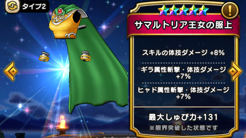 ドラクエウォークの防具「サマルトリア王女の服下」の評価や習得スキル・特殊効果をまとめています。