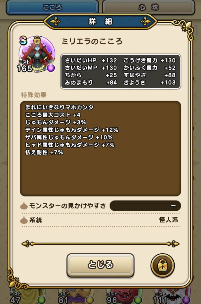 状態異常はハーゴンのきしに眠り結構入り、幻惑は左右はそこそこ入る。ミリエラはあまり状態異常入らないが、メダパニは辛うじて入る(期待しないほうがいい)。