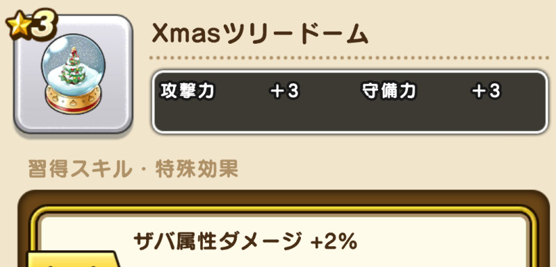 ドラクエウォークの防具「Xmasツリードーム」の評価や習得スキル・特殊効果をまとめています。