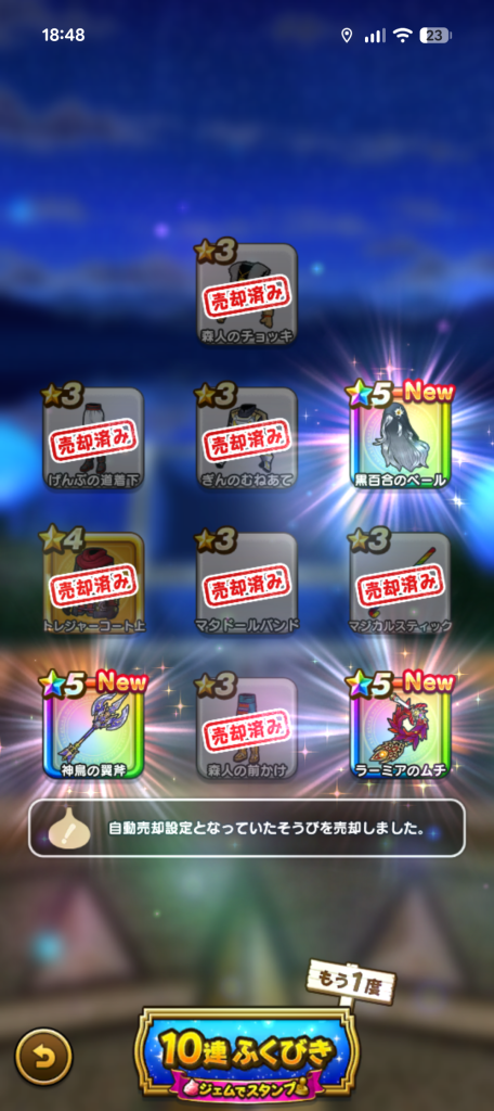 武器が何も持ってなかったので12000ジェム使ったけど何も当たらなくて発狂した。