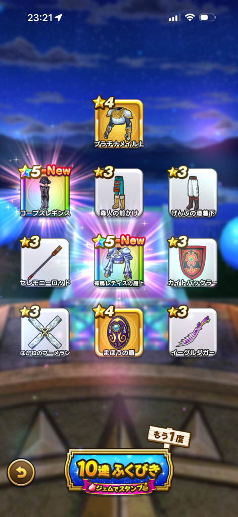 持ってる防具が出ました。もうちょっと引いて棺。ジェム入れても星5がでないとか被りで30000以上削られそう(入れてもタバサ)なので、ここらで終わりですかね。