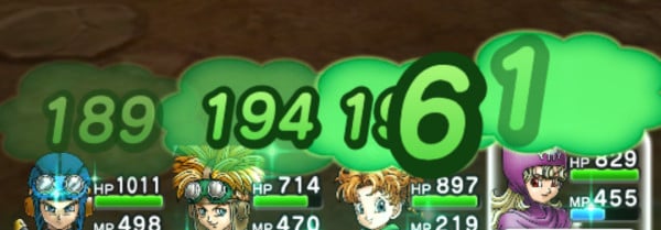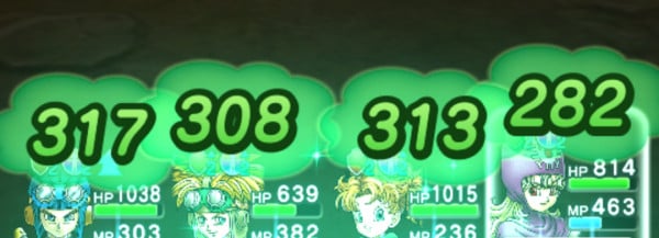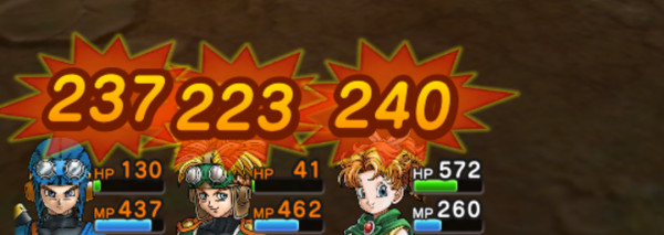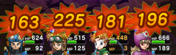 ![]() バブルスライム (HP約2500) | ![]() ドラキー (HP約2100) | ![]() スライム (HP約1700) | ![]() バブルスライム (HP約2500) |