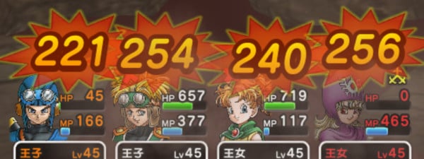 物理攻撃への対策を行っても戦闘不能になるケースがあります。味方が倒れたらすぐに蘇生を。サマルトリア王子は回復よりも蘇生の方がいい場合もあります(回復量が少ないため)。