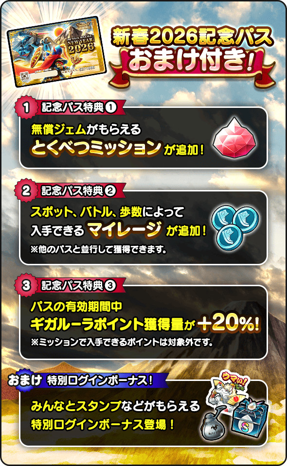 ※おまけは1/1(木)0:00時点ですでにゴールドパスを利用中の方にも適用。