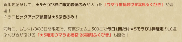正月2026復刻ガチャ(ウマうま福袋'26)の当たり武器・おすすめ