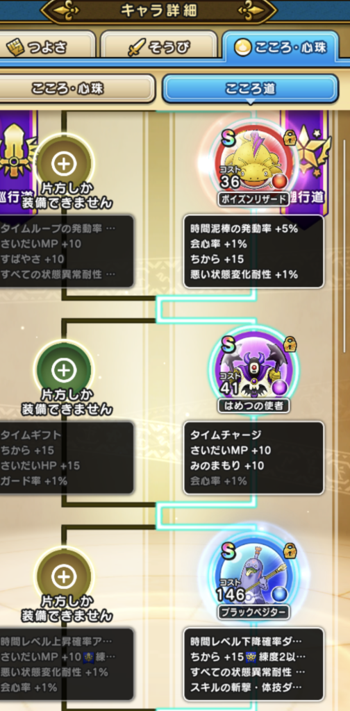 4上の枠にこころを装備していないと、以降のこころ道の効果は無効